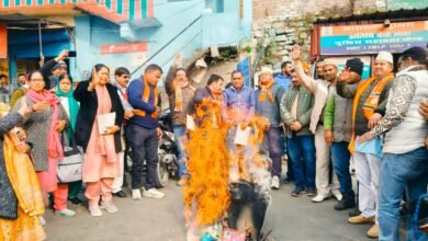 अंकिता भंडारी हत्याकांड को लेकर भाजपा का कांग्रेस के खिलाफ प्रदर्शन, पुतला दहन