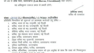 देहरादून – भारत सरकार गृह मंत्रालय के आदेश के बाद अब राज भवन का नाम बदल करा लोक भवन किया…