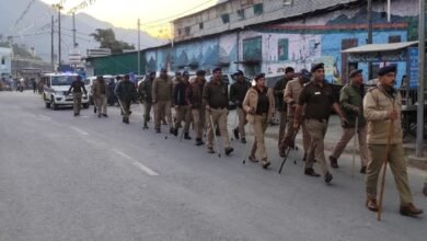 गौचर मेला–2025, सुरक्षा के पुख्ता इंतज़ाम— कोतवाली कर्णप्रयाग पुलिस ने गौचर क्षेत्र में किया फ्लैग मार्च