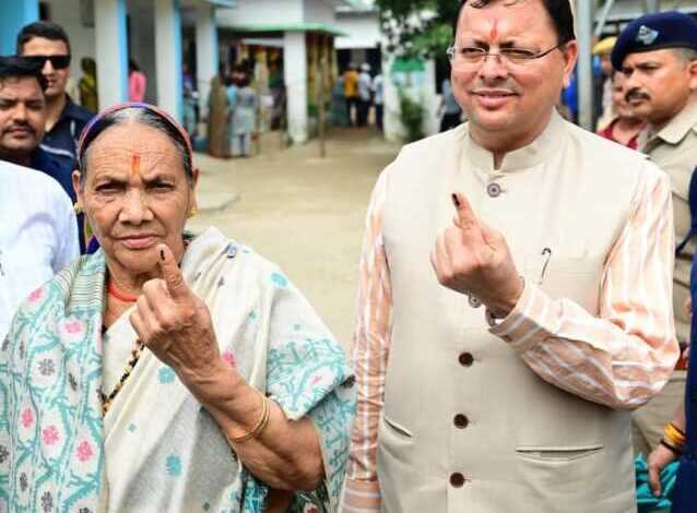 मुख्यमंत्री पुष्कर सिंह धामी ने खटीमा में अपनी मां के साथ किया मतदान, कहा- पंचायतें ग्रामीण विकास की रीढ़