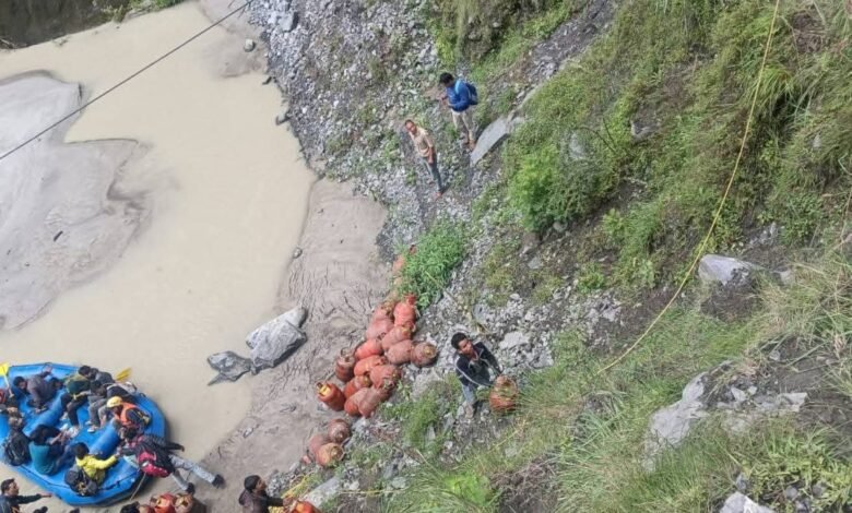 आज रविवार को राहत कर्मियों ने भागीरथी नदी में राफ्ट उतारकर घरेलू गैस सिलेंडर और आवश्यक सामग्री नदी के एक छोर से दूसरे छोर तक पहुँचायी। इसके बाद यह सामग्री प्रभावित गांवों तक भेजी गई। इस बीच धराली सहित सीमांत गांवों में खाद्यान्न वितरण भी किया गया, जिससे ग्रामीणों को बड़ी राहत मिली।