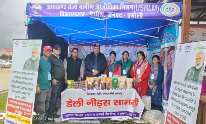 विधानसभा मानसून सत्र के प्रथम दिवस ग्राम्य विकास मंत्री गणेश जोशी ने भराड़ीसैंण में राष्ट्रीय ग्रामीण आजीविका मिशन के अंतर्गत स्वयं सहायता समूहों की महिलाओं द्वारा लगाए गए विभिन्न स्टालों का अवलोकन किया। इस दौरान ग्राम्य विकास मंत्री ने महिला समूहों के उत्पादों की गुणवत्ता की प्रशंसा की और उन्हें प्रदेश की अर्थव्यवस्था की सशक्त धुरी बताया।