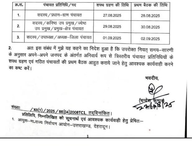 देहरादून –  त्रिस्तरीय पंचायत चुनाव सम्पन हिने के बाद अब शपत ग्रहण का समय तय हो गया है अब बहुत जल्द शपत ग्रहण समारोह का आयोजन होने को है