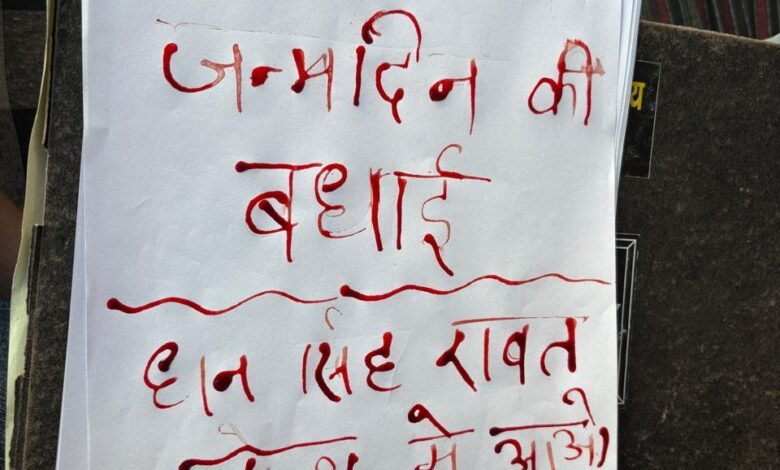 प्रधानमंत्री को खुन से लिख कर जन्मदिन कि बधाई ,प्रदेश सरकार को जगाने को कहा