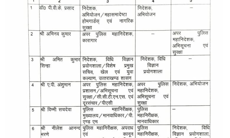 देहरादून – प्रदेश मै 16 पुलिस सेवा के अधिकारियो का स्थंत्रण किया गया है चमोली के पुलिस कप्तान सर्वेश्वर पवार को पौड़ी का वरिष्ठ पुलिस कप्तान तो चमोली मै सुरजीत सिंह पवार को पुलिस कप्तानी दी गयी है