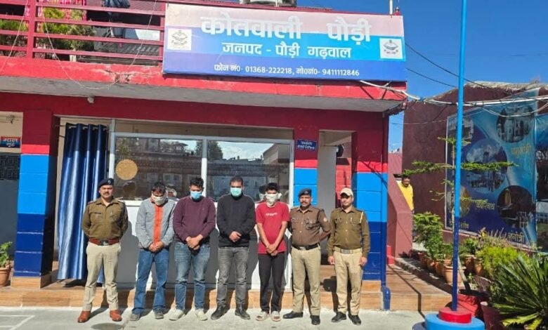 प्राप्त जानकारी के अनुसार कोतवाली पौड़ी पर कंट्रोल रूम के माध्यम से सूचना प्राप्त हुई की परसुंडाखाल क्षेत्र में कुछ लोगों द्वारा रिकवरी एजेंट और उनके अधिवक्ता पर हमला कर पत्थरबाजी की जा रही है। सूचना मिलते ही पुलिस टीम बिना किसी विलंब के मौके के लिए रवाना हुई। पुलिस के पहुंचने तक स्थिति अत्यंत तनावपूर्ण हो चुकी थी। इस दौरान कुछ व्यक्तियों द्वारा दो लोगों के ऊपर पत्थरबाजी की जा रही थी और उन्हें मारने पर उतारू हो रखे थे। झगड़ा कर रहे दूसरे पक्ष को जब पुलिस ने सख्ती से चेताया, तो कई लोग मौके से भागने लगे। पुलिस ने समझाने-बुझाने का हर संभव प्रयास किया, किंतु झगड़ा न रुकने ओर शांति व्यवस्था भंग करने पर 04 व्यक्तियों (अमित,निवासी मेहरगांव पौड़ी,अभिमन्यु रावत, निवासी पैडुलस्यूँ पौडी,अजय कुमार, निवासी परसुण्डाखाल पौडी व ऋतुराज कुकरेती, निवासी लक्ष्मी नारायण मौहल्ला पौडी) को धारा 126/135/170 बीएनएसएस के तहत हिरासत में लिया गया। चारों अभियुक्तों को आज माननीय संयुक्त मजिस्ट्रेट, पौड़ी के समक्ष पेश कर आवश्यक वैधानिक कार्यवाही की गई।