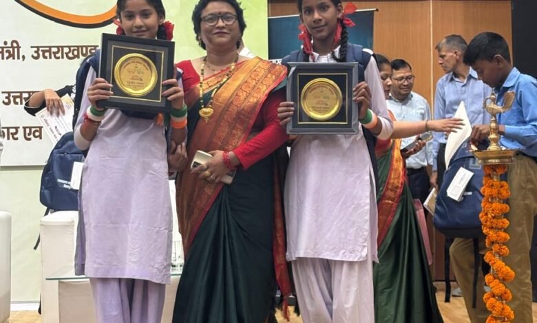 सुबोध उनियाल भाषा मंत्री ने किया दो छात्राओ को सम्मानित