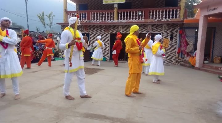 बाणों के साथ बमोथ में पांडव नृत्य का उपस्थित दर्शकों ने आनन्द लेकर आशिर्वाद लिया