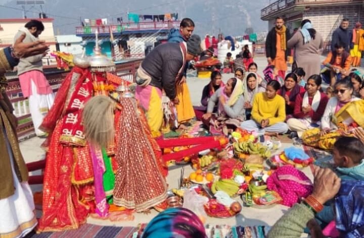 खल्ला गांव से निकली देवी मां की डोली के नगर प्रवेश करते ही वातावरण भक्तिमय हो उठा। श्रद्धालुओं ने देवी मां के दर्शन कर पुष्प, अक्षत और भेंट चढ़ाकर मनोकामनाएं मांगीं। हर द्वार पर श्रद्धा और आस्था का अद्भुत दृश्य देखने को मिला।नगरपालिका क्षेत्र के वार्ड संख्या 06 में गोविंद सिंह गुसाईं के निवास स्थान पर गुरुवार रात्रि विश्राम के पश्चात शुक्रवार को देवी डोली ने नगर के विभिन्न वार्डों का भ्रमण किया। इस दौरान देवी मां ने घर-घर जाकर अपनी धियाणियों और श्रद्धालुओं की कुशल-क्षेम पूछते हुए दर्शन दिए।