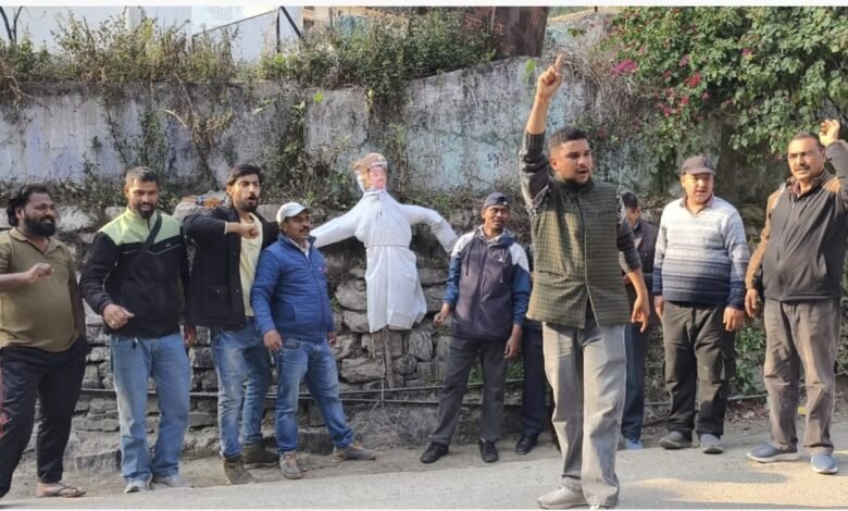 शिक्षा निदेशक के साथ मारपीट के विरोध में कर्मचारियों ने फूंका विधायक का पुतला